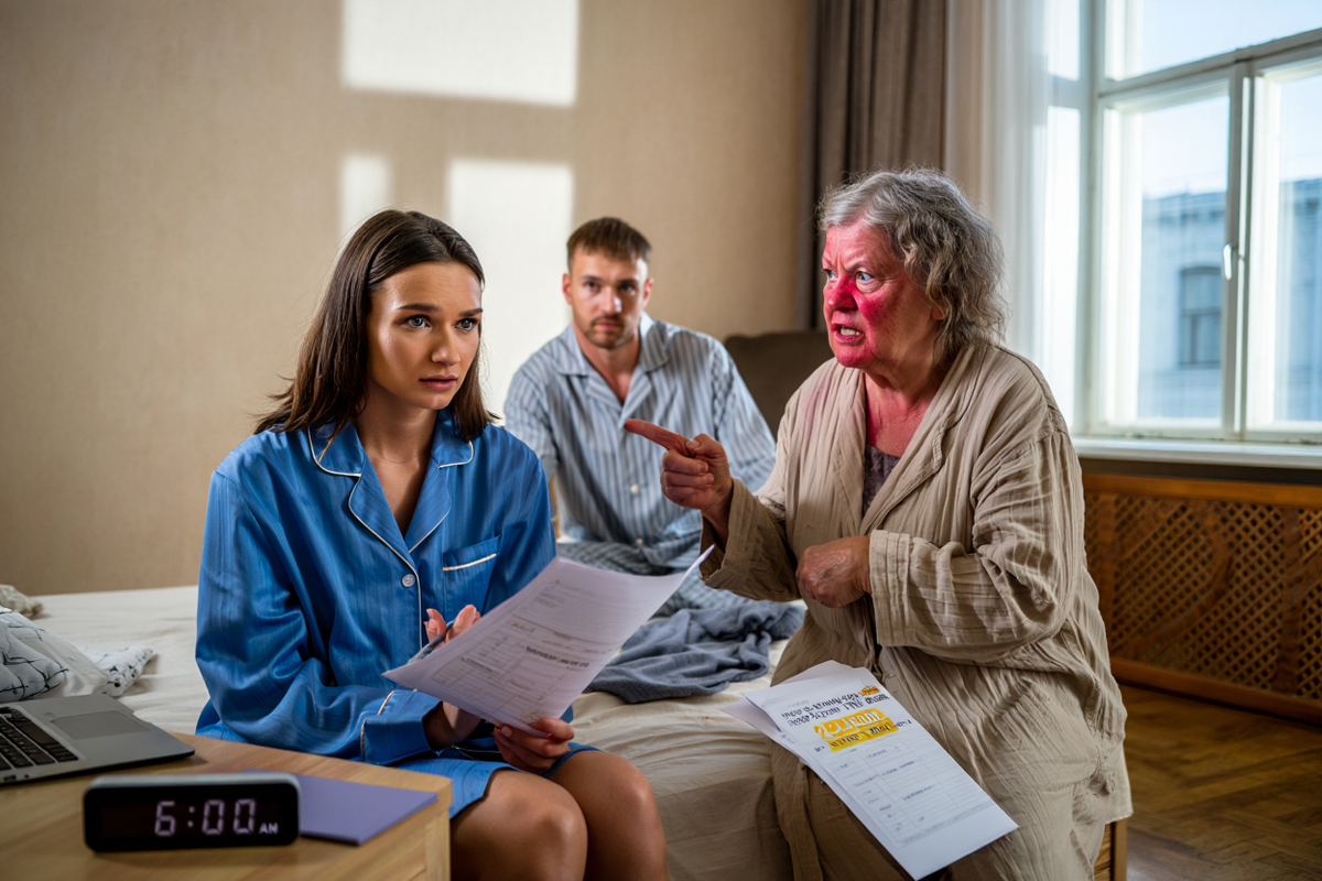 Раиса Петровна стояла в дверном проёме, вся красная от злости, размахивая банковской выпиской. Её седые волосы растрепались, халат криво висел на плечах. Я спокойно отложила книгу и посмотрела на неё.