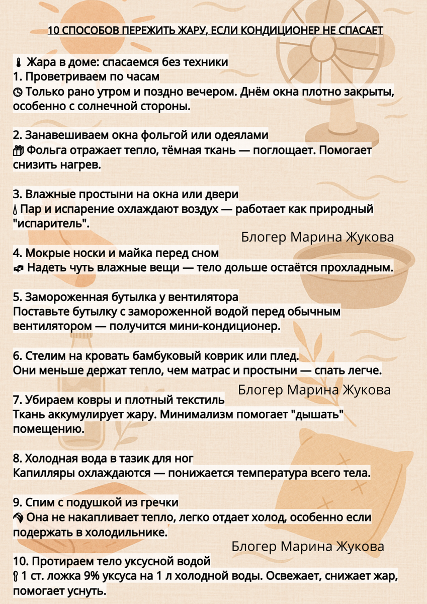 🌡 Жара в доме: спасаемся без техники 1. Проветриваем по часам