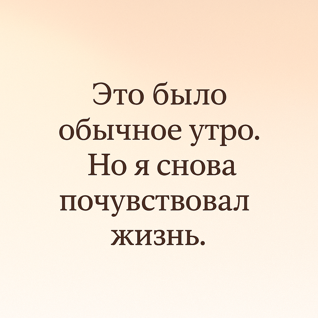 Иногда счастье приходит не с громкими событиями, а с тишиной. С ароматом чая. С первым солнечным лучом на лице. В последние дни я вдруг стал засыпать с детским предвкушением завтрашнего утра. Не из-за чего-то грандиозного. Просто — потому что жить стало как-то особенно приятно. Я стал замечать, как ночь стала моим укрытием. Я с радостью ухожу в сон, даже если не помню снов. Но просыпаюсь легко. С улыбкой. Без будильника — как сегодня. Это утро принесло с собой редкое чувство: благодарность. За возможность просто быть. Чувствовать. Видеть мир, слышать его дыхание, не торопиться, наслаждаться. Всё было медленным. Правильным. Вкус завтрака, крепкий чай, вода после чистки зубов — всё вдруг обрело вкус и смысл. Я подумал: что бы ни случилось сегодня — этот день уже хорош. Потому что начался с тишины, с удовольствия, с чувства жизни. Выйдя на улицу, я сделал то, что стало для меня привычкой: остановился, закрыл глаза, поднял лицо к небу. Вдохнул глубоко. Это простой жест, но он возвращает ме