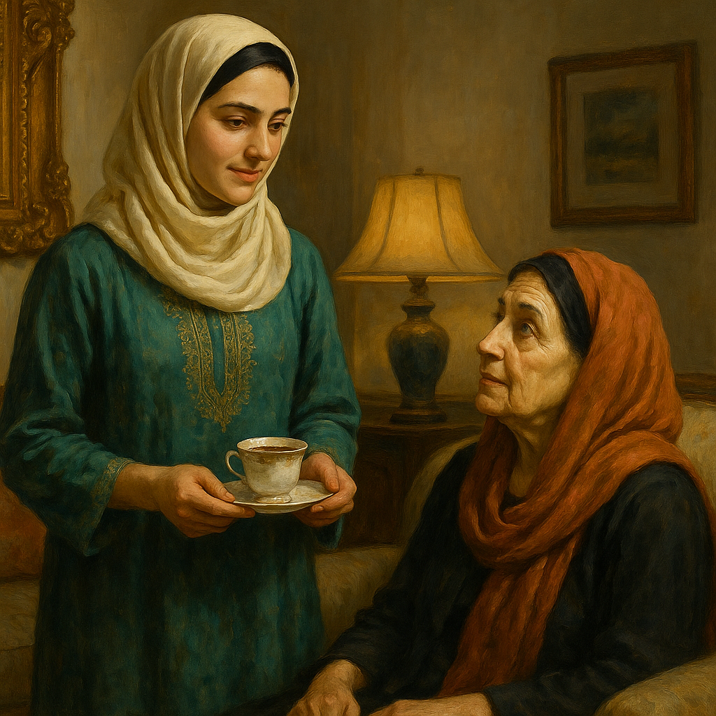 Отец Ахмеда внезапно ушел к другой женщине . Ну знаете, как это бывает, седина в бороду, бес в ребро. Мать была в печали и в глубоком расстройстве и решила помириться с сыном. Ахмед привёз свою деревенскую жену в свой дом На втором этаже, под потолочным вентилятором, сидела мать Ахмеда госпожа Наджия. В молодости она ездила в Италию на яхте, а теперь пила горький кофе, не размешивая сахар, чтобы не мешать судьбе. Когда она впервые увидела Софу, у неё дрогнул палец… и сразу снова замер. — Простая. В платке. С акцентом. — сказала она . Из деревни? — Да, мадам. Из самой земли, без шелухи. Софа не заискивала. Она уважала. Но не кланялась. Не носила тяжёлых украшений, но её жизнелюбие, простой веселый нрав потихоньку растопили сердце свекрови.. В доме, где привыкли к французским тостам и абрикосовому варенью, она впервые поставила на стол фуль с тахини и принесли деревенский фитир с соленым сыром И свекровь вдруг сказала: — Это… как будто еда из памяти. Софа не пыталась понравиться.У