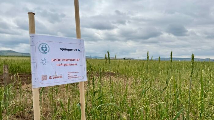 Испытания нового биостимулятора начались в мае этого года на базе малого инновационного предприятия «Эком» Восточно-Сибирского государственного университета технологий и управления (ВСГУТУ). Автор разработки – заведующая молодёжной научно-исследовательской лабораторией ВСГУТУ Туяна Тумурова. Сначала семена пшеницы замачивали в биостимуляторе в течение 20 минут, далее просушивали и затем высаживали на полях в Иволгинском районе. Разработка создана на основе переработанного вторсырья животного происхождения. Препарат не содержит химически опасных веществ, биоразлагаем и обогащён питательными элементами. Как пояснила автор проекта, стимулятор должен помочь семенам прорастать в условиях засухи за счёт питательной оболочки: «Его можно применять в зависимости от кислотности почвы. То есть, если у вас кислая почва, то можете использовать щелочной биостимулятор, если у вас наоборот щелочная среда почвы, то можно использовать кислотный. Но самый универсальный — это нейтральный биостимулятор, ко