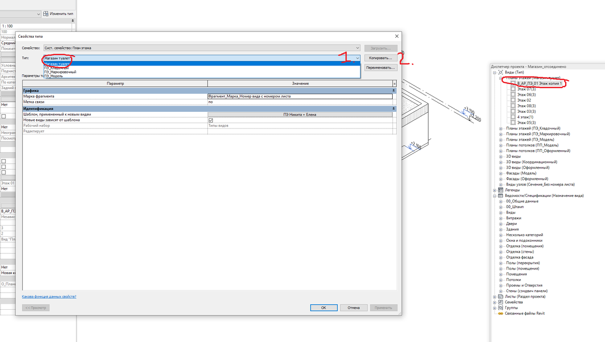 Как перенести этаж в диспетчере проекта. Или как создать новый тип этажа.