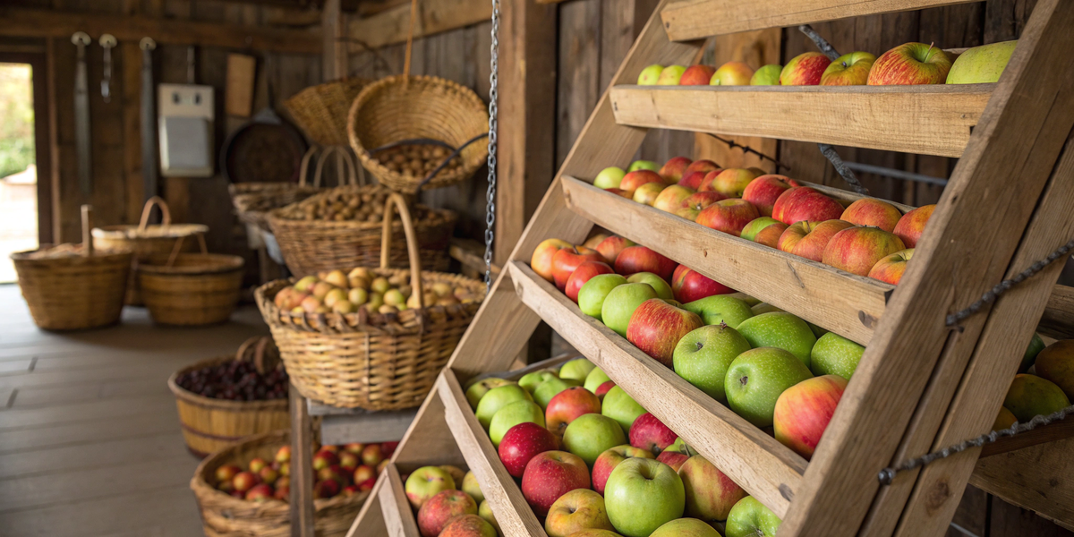 3. Яблоки лучше хранить в тёмном и прохладном месте (температура 0°С…+5°С, влажность 85–90%). В городской квартире подходят кладовка, балкон, погреб. Влажность не должна быть слишком низкой или высокой — иначе яблоки либо высохнут и станут жёсткими, либо покроются плесенью.