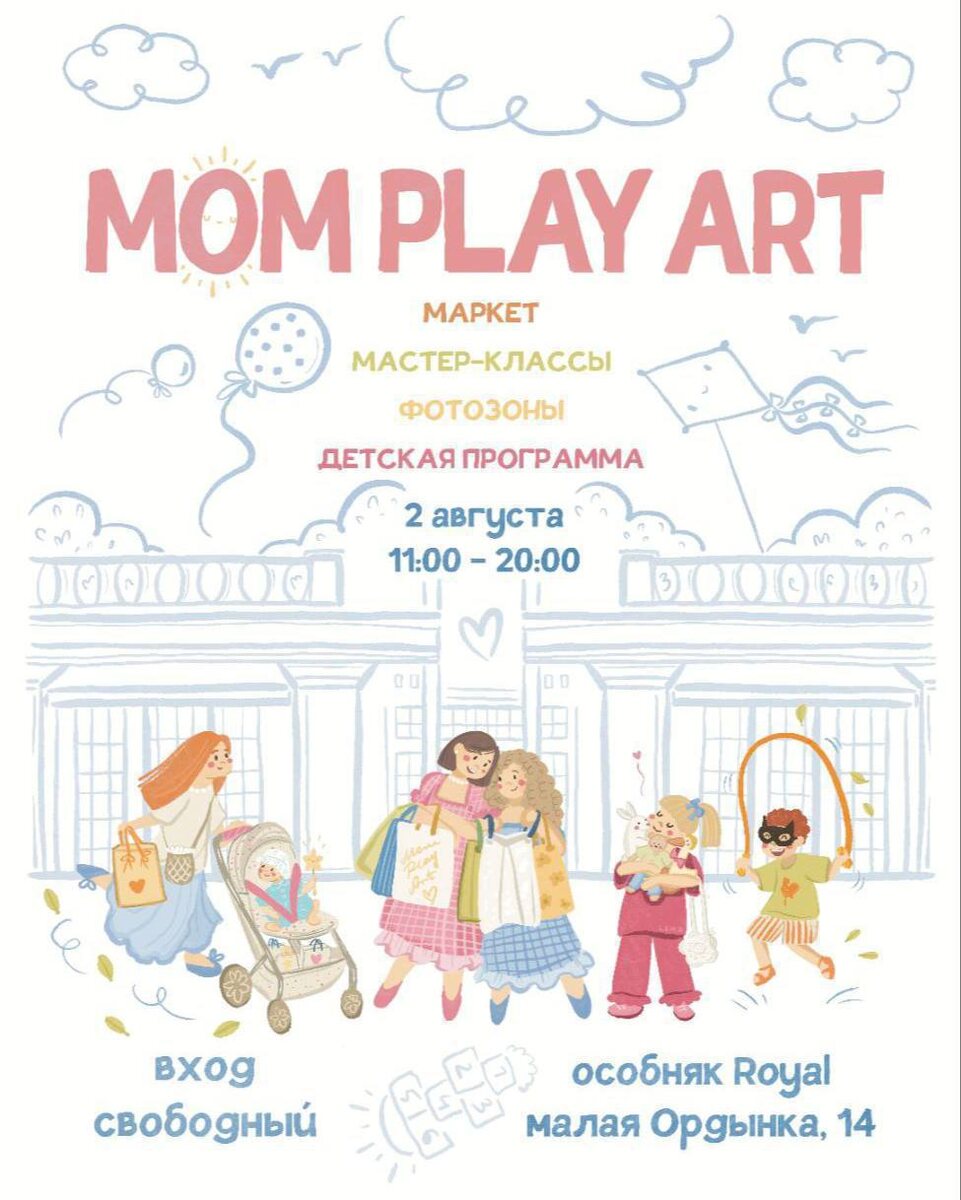 Летний Маркет от MOMPLAYART 📆 2 августа 11:00 - 20:00 📍Малая Ордынка 14 Вход свободный В эту субботу пройдет самый эстетичный маркет локальных брендов для мам и малышей. Маркет пройдет в красивейшем особняке на Малой Ордынке. Запись на мастер-классы и концерты, к сожалению, уже закрыта. Но и без них там будем чем увлечь детей: 🔵на входе детей будет ждать белоснежный батут 🔵с 11:00 до 15:00 будет работать игровая от Ribambelle Мы были на их осеннем и зимнем маркете и это был полный восторг: эстетика, мастер-классы, угощения, анимация, сам маркет - все на высшем уровне! Плюс открыли для себя несколько классных локальных брендов. Здесь наш подробный отзыв. ‼️Рекомендации: 🔘лучше приезжать к началу открытия Маркета, чтобы спокойно пройтись по Маркету; 🔘продумайте свои лучки - без классных фотографий уйти не получится 📸 🎁 Первым 30 гостям маркета подарят синие ретро-шоперы, они же авоськи. Кто с нами?👋