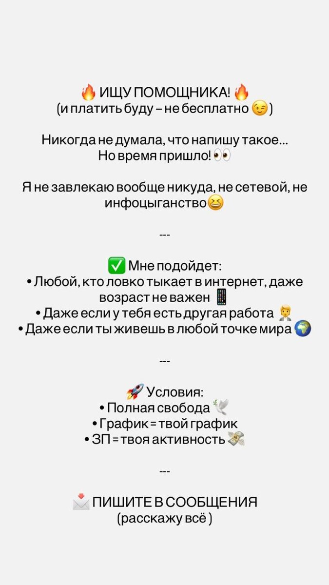 Друзья, ищу помощников лично себе Пишите 🌸
