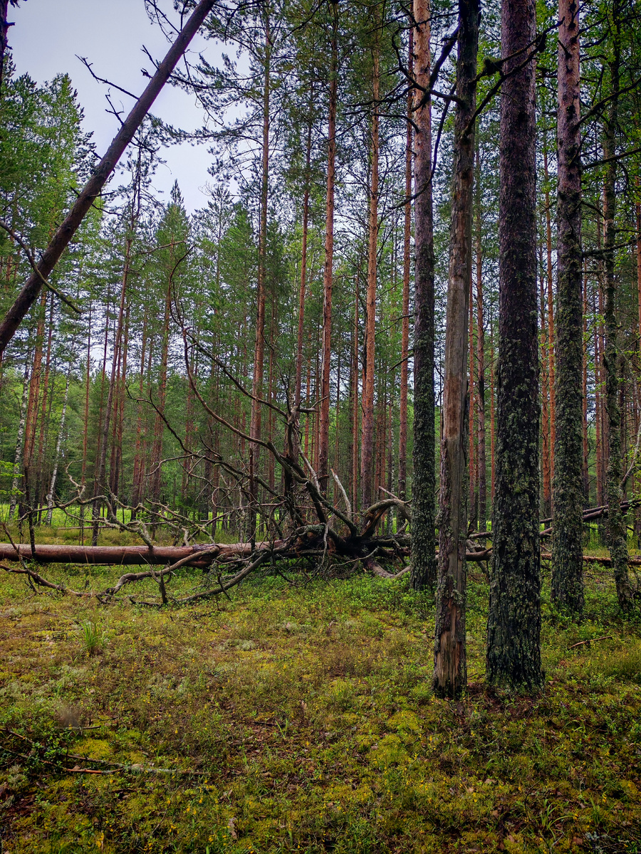 Путь лежал через лес. Могучие сосны, белые мхи, чёрные ручьи, злые комары, жёлтый песок под ногами - такой была наша дорога. И если средняя скорость человека 4 км/ч, то с детьми и поклажей на дорогу уходило около двух часов.