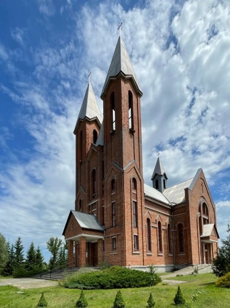 Несмотря на то, что нынешнее здания костела Воздвижения Святого Креста строилось с 1992 по 1997 год, у этого места древняя история. Первый католический храм на этом месте был построен в 1638 году, но сгорел в 1812-м. Новый костел построили в 1818, но и его позже перестроили, украсили органом. С 1936 года костел был закрыт и снова возродился в 1997 году.