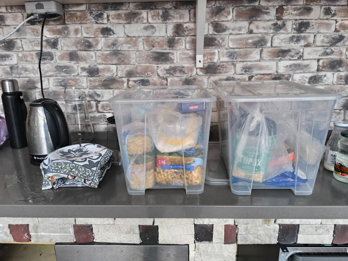 Привычку хранить продукты в герметичных контейнерах переняла от своей деревенской бабушки, у которой в 70-е - начало 80-х годов СССР (моё детство) были довольно высокие стандарты ведения хозяйства даже по нынешним временам. Тогда не было никаких пластмассовых контейнеров. Бакалею хранили в трехлитровых банках и разных красивых банках в наборе под крупы и сахар, а зерно и комбикорм -- в железных бочках, закрытых железными крышками. Про бабушкино и дедово хозяйство ТУТ: