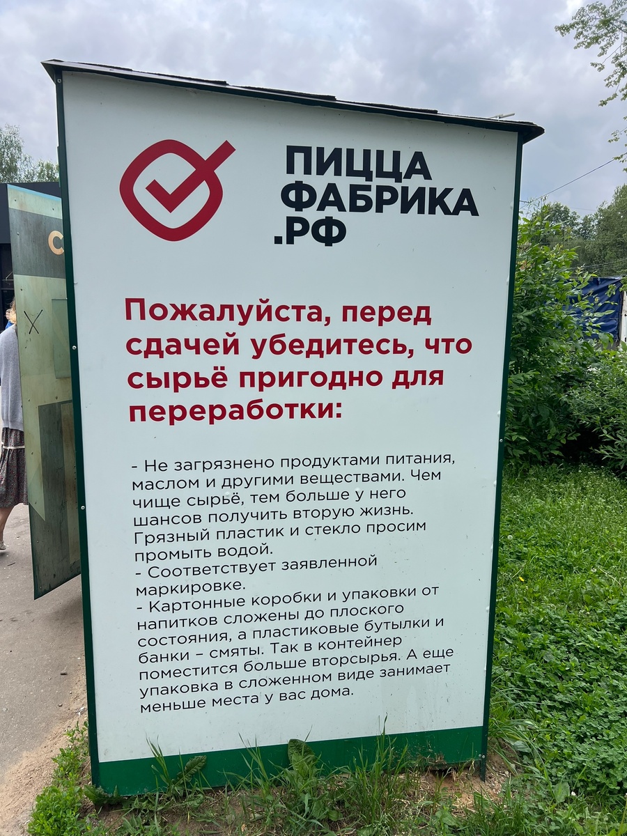... то его делает экологически ответственный бизнес. Но это тоже редкое явление :( Ярославль демонстрирует восхитительные примеры активности общества в условиях тотального бездействия регионального оператора. Например, у каждого ресторана ПиццаФабрика Ярославль установлены контейнеры для многофракционного раздельного сбора отходов, а внутри нет одноразового при заказе в заведении, а еще собирают крышки и батарейки. Каждая фракция собирается в мешок, выгружается без стеснения на глазах у пользователей и вывозится. А люди в ответ приносят чистое вторсырье :) P.S. Мы попали на момент вывоза вторсырья, поэтому демонстрация того, что можно сдать сопровождается показом процесса его вывоза.