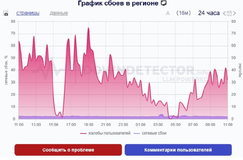 ⚡️ Губернатор Красноярского края прокомментировал отключение мобильного интернета С субботы 26 июля в ряде городов Красноярского края, в том числе в столице края, не работает мобильный интернет. 29 июля губернатор региона Михаил Котюков обратился к жителям в своём телеграм-канале. «Дорогие друзья, вижу все ваши сообщения с просьбой прокомментировать временные ограничения работы мобильного интернета. Это связано с необходимостью усиления мер безопасности в определенных территориях Красноярского края исходя из данных об оперативной обстановке и для профилактики сетевых угроз. Как вы знаете, аналогичные мероприятия проходят сейчас и в других регионах нашей страны. Прошу с пониманием отнестись к этой ситуации. Защита жителей и инфраструктуры – важнейший вопрос сегодня». Фото: Downdetector 🤩Новости Сибири | Прислать новость