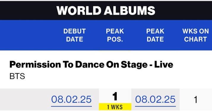 🌺 Альбом "Permission To Dance On Stage - Live" дебютировал на первом месте в чарте Billboard World Albums, став первым концертным альбомом