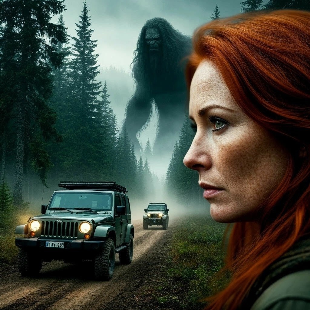 Джипы свернули с основной дороги на более узкую, которая вела к базе. И тут охотники увидели женскую фигуру! Это было странно, так как они ехали уже практически в глухом лесу, вдали от любого населённого пункта! А женщина, судя по короткому платью и рыжей копне волос, была совсем молодой. Она спокойно шла, не оглядываясь, несмотря на то, что на неё неслись машины.