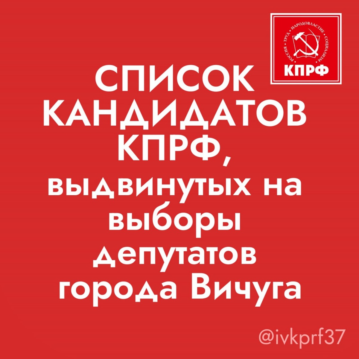 ✅В городскую Думу городского округа Вичуга восьмого созыва от Ивановского областного отделения КПРФ по единому избирательному округу
