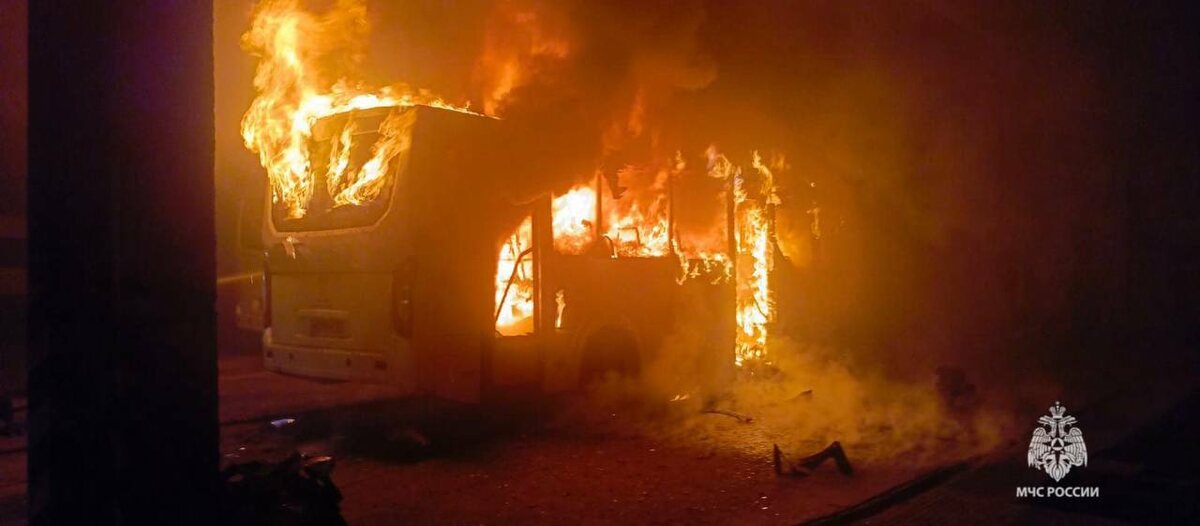 В Башкирии в ремонтном цеху сгорел автобус