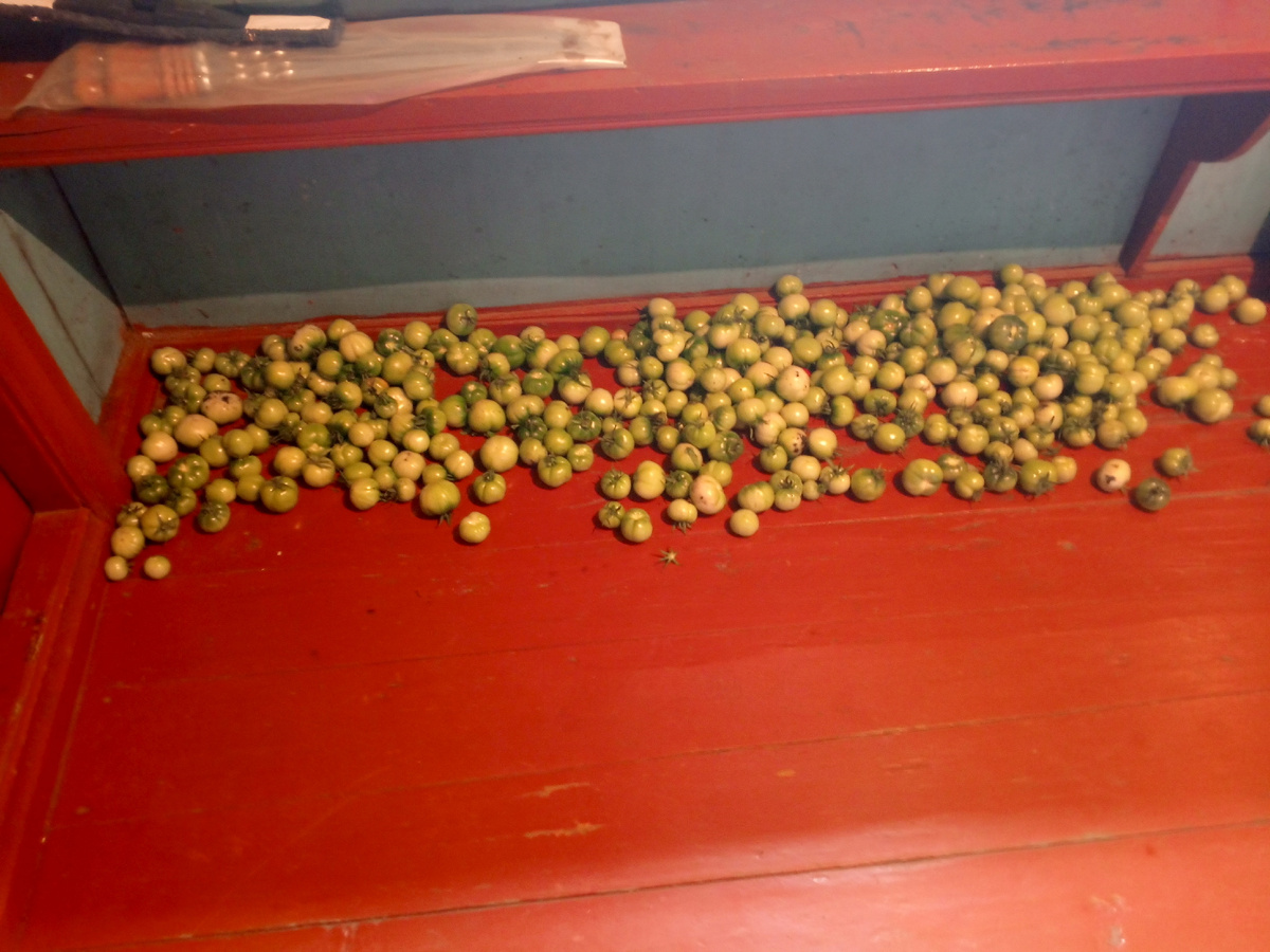 Доброе утро. У нас ночью шел дождь и сейчас идет ливень.Такое ощущение как будто кто то на небе из большой бочки выливает воду на землю. Вчера с утра сварила пельменей собаке,так как супа не было.И положила пельмени прямо на пол во дворе,кастрюля у собаки была грязная,мыть некогда было,торопилась на автобус.Днем приехала домой пельмени как лежали так и лежат,разозлилась на собаку,посмотри какая королевишна в нашем доме живет,отругала ее.Думаю не буду вечером кормить ,потом взяла положила прямо на пельмени немного консервы килька в томате(кошке покупаю),гляжу съела консерву и пельмени. Уехала на автобусе к сыну,муж ночевал там.И забыла взять с собой гетры старые в которых я на огороде работаю.Кофта есть а гетры увозила стирать домой.Пришлось работать в добрых брюках,в носки их заправила,чтобы не уделать их в огороде.Там сыро и грязно.Травы наросло! Открыла помидоры и собрала которые покрупнее три ведра по 10 литров.Положила их в сени,потом сын приедет привезет на машине д