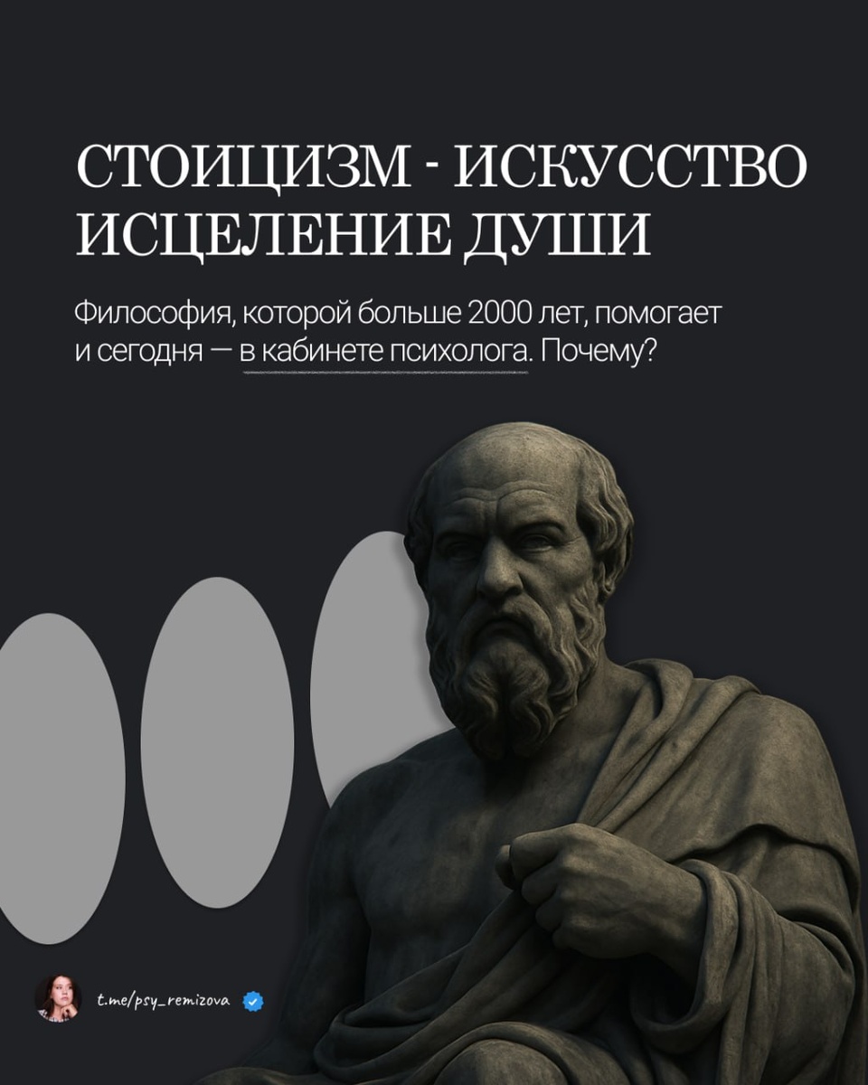 🟢 Мы часто ищем психологическую опору в книгах по саморазвитию, коротких мотивационных роликах или у популярных психологов. Но есть философия, которой больше двух тысяч лет, и она удивительно современна. Стоицизм. Это не про «держи себя в руках», а про умение не теряться в хаосе жизни. Рассказываю, как стоицизм перекликается с психотерапией — и как его идеи могут помочь именно вам.