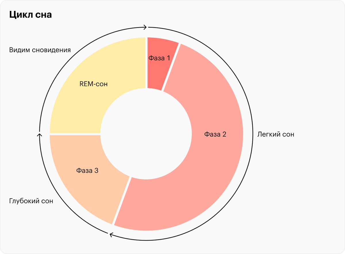 Главное — вовремя проснуться, а не просто "доспать часы". Сон делится на циклы продолжительностью 90 минут, каждый из которых включает: Один полноценный цикл длится около 90 минут. За ночь мы проходим 4–6 таких циклов.