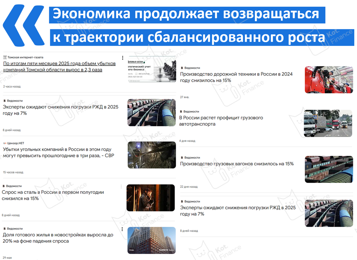 🔹замедление инфляции LTM (за последние 12 мес.) до 7-7,5% на фоне уже реального падения экономики