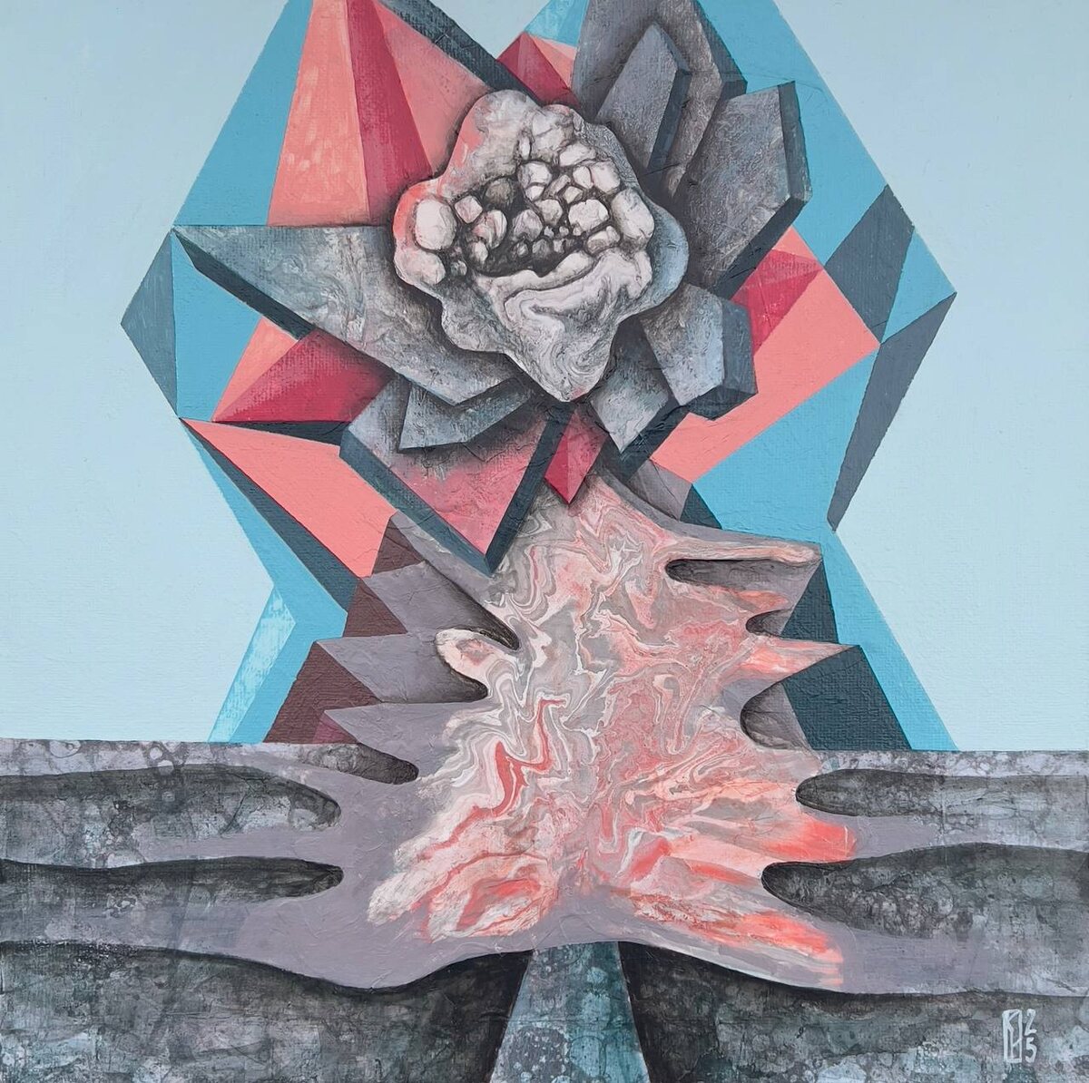Кристаллоцвет 30х30 холст/акрил, коллаж 2025 ••• По-другому задачу соединения образа кристалла и растения решает работа «Кристаллоцвет». Форма, похожая на цветок, здесь то ли вырастает, то ли вытекает из потока кристаллической формы. При этом кристалл хоть и выглядит цветком, не обладает ярким колоритом, что контрастирует с удивительными цветами неорганических форм. ••• Рассмотреть ценность «Драгоценностей» Натальи Порошиной в галерее YOLKA art можно до 10 августа. ••• Москва. Ходынский бульвар 20а, с 11:00 до 21:00 ежедневно. Выставка бесплатная, работы продаются. Вся контактная информация на сайте YOLKA.art