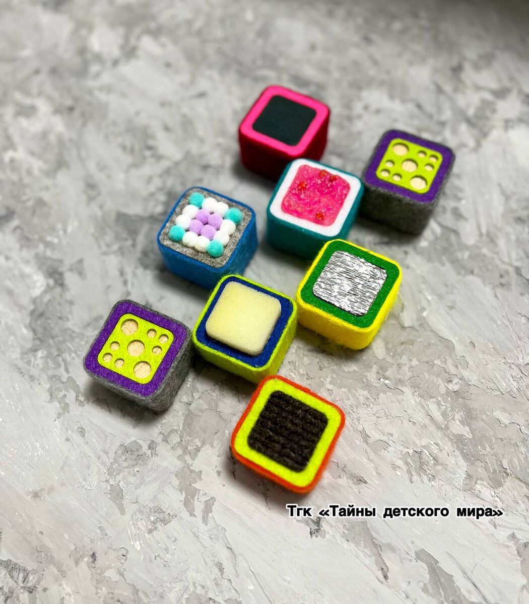 Если в вашем арсенале до сих пор нет такой полезняшки- то искренне рекомендую ее приобрести. Оно способно очаровать всех малышей от самого раннего возраста до четырёхлетних исследователей. Варианты взаимодействия: ▫️Для грудничков Прикосновения к коже малыша становятся первым контактом с миром различных тактильных ощущений. Нежно поглаживая ладошки или стопы ребёнка сенсорными кубиками, расскажите ему, какая поверхность мягкая, какая колючая или гладкая. Можно подключит пальчиковую гимнастику. Таким образом вы обогащаете представления малыша о внешнем мире, стимулирует осязание и развивает мелкую моторику рук ▫️Для уверенно сидящих малышей Предложите ему кидать кубики в емкости разного материала-тазик, металлическую кастрюлю, тканевый мешочек и т.д.. Каждый раз звучат совершенно разные нотки, что учит различать шумы и улучшает слуховое восприятие. ▫️После года Сенсорное лото превращается в инструмент расширения словарного запаса. Используйте игру, называя текстуры: «Шершавый»,