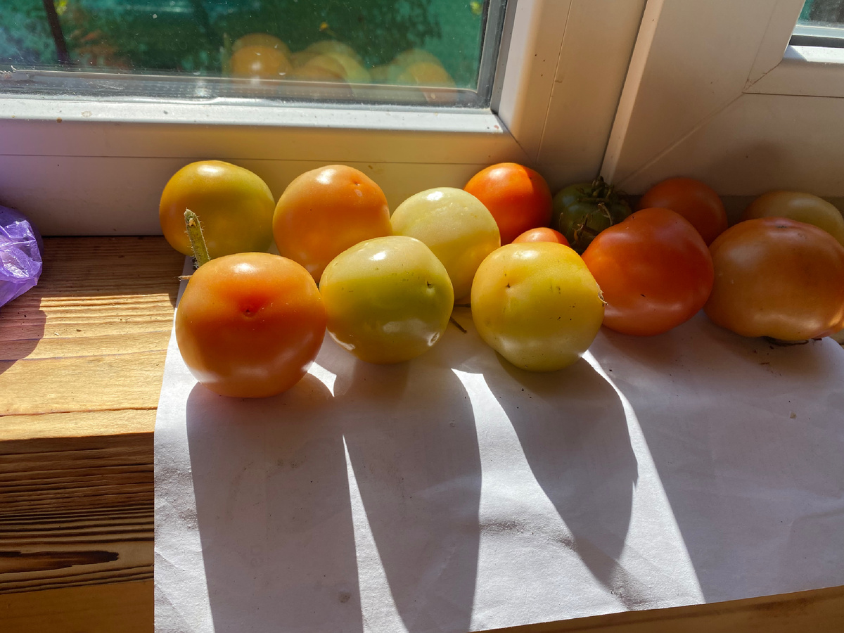 Всем привет! Если мы не знакомы, я Таня. Счастливый обладатель 6-и соток в подмосковье. Итак, помидоры… Они простые и благодарные. Растут как не в себя. Особенно в теплице. Даже без нее, но с условиями. Я не хочу теплицу и выращиваю томаты третий год в открытом грунте. Хотя, каждый год зарекаюсь это делать вновь Перед тем как взяться за выращивание томатов впервые, я изучила вопрос. Для открытого грунта необходимо выбирать низкорослые экземпляры. Научно они называются детерминантные. Почитала про сорта. Остановилась на Саньке. Обещали, что это неприхотливый вид. Еще в магазине прихватила Лель. В первый год погода благоприятствовала и некоторые томаты успели вызреть почти до технической спелости. Были собраны и оставлены в ящике на даче на неделю дозреть. Но случилась незадача. В дом до нашего отъезда коварно пробралась хитрая синица. Дабы не умереть с голода, маленькая, но гадкая птичка поклевала все помидоры. А потом обгадила весь дом. Томаты, оставшиеся на ветках, п