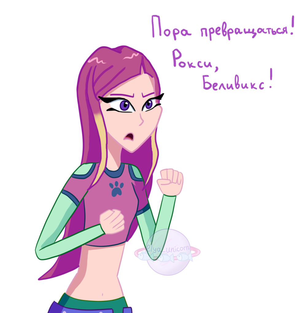 Привет, ребятки! Меня зовут Эля Юникорн. Я рисую комиксы и люблю мультфильмы: часто строю по ним теории и вообще разбираю всякие разные вещи. Уже почти месяц назад я выложила видео с теорией о том, какое же у Рокси превращение. На самом деле, такое видео я выкладывала ещё пять лет назад, но тогда я буквально писала текст на фоне кадров из мультсериала и зрителям, конечно, было не очень удобно читать теорию, а не слушать, как ожидается от видео. Сейчас я сделала видео с голосом. Однако, вставки с приветствием и прощанием обладают каким-то плохим звуком, потому что я записывала голос на другой микрофон. И это странно, раньше этот микрофон хорошо работал, например, на видео с распаковкой куклы. Я думаю убрать эти вставки, потому что основная часть вполне себе функционирует без них, а звук в основной части хороший. В общем, если вам удобнее смотреть видео, а не читать статьи, то можете посмотреть его. Не знаю, решу ли я к этому времени вырезать эти вставки и есть ли здесь такая функция воо