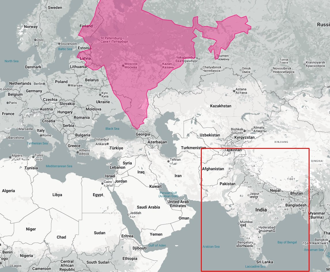 Реальный размер Индии на карте России (дивный плоский мир Меркатора