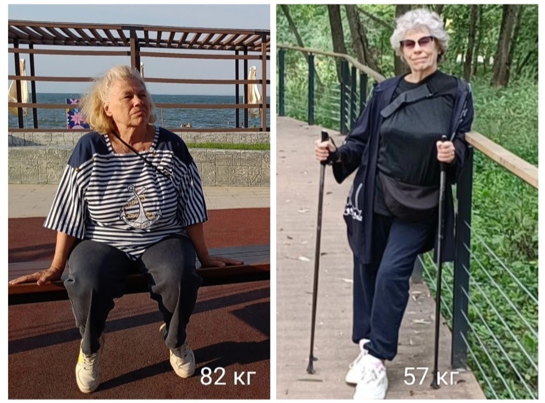 Назначив лекарства, врач посоветовала заняться суставной гимнастикой и скандинавской ходьбой для пенсионеров по программе Московского Долголетия. Про лишний вес ничего сказано не было. А ведь 82 кг при росте 151 см - это ожирение 1-й степени.