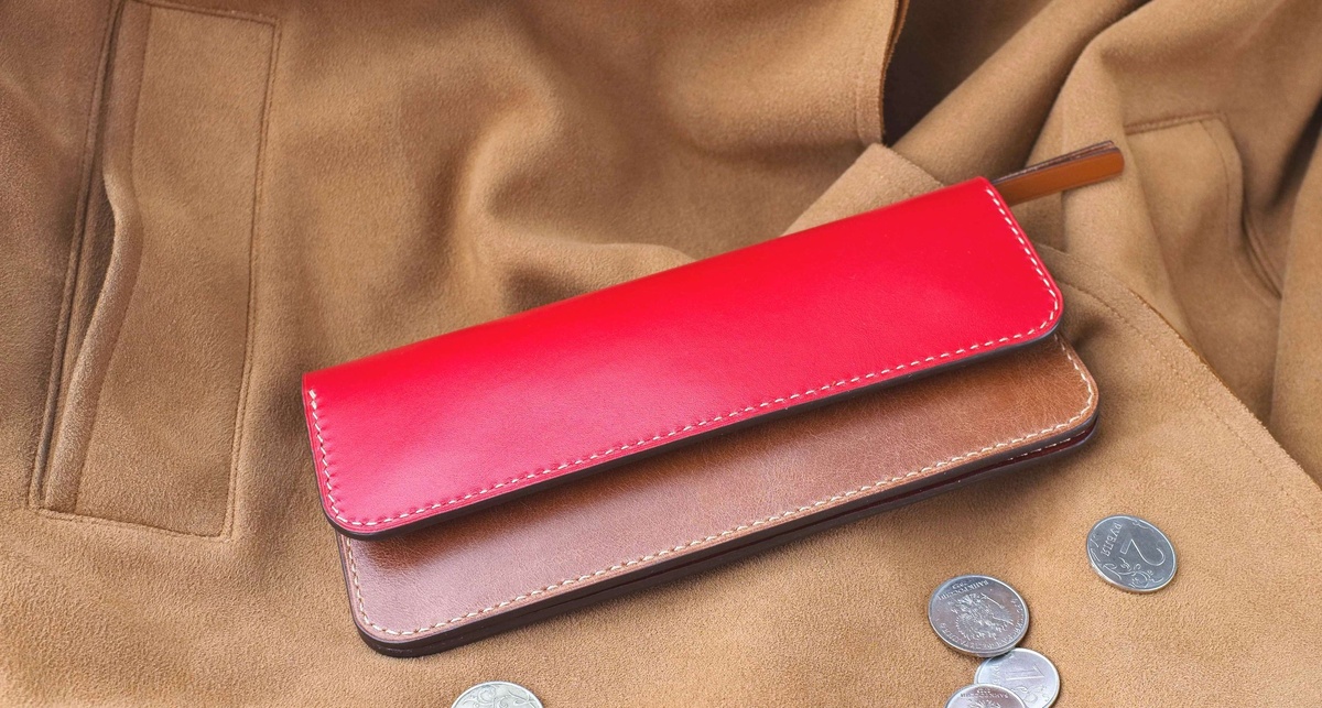 клубничный Арлекин, снаружи алый, внутри все виды карамели. Кто еще не знаком с этой моделью, описываю: 4 слота для карт + один потайной+ один наружный, большое отделение под мелочь, отделение для купюр, а под клапаном и для бумажек/чеков найдется место. Все прошито вручную, упаковано в красивую коробочку с наполнителем. Можно дарить, а можно и себя порадовать. Сомнения прочь, забирайте!