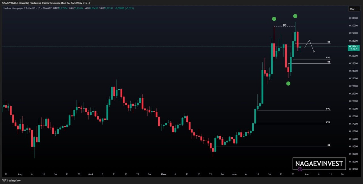 Есть вероятность реакции от верхнего OB и откат к нижнему OB откуда также можно ожидать реакции на наценку