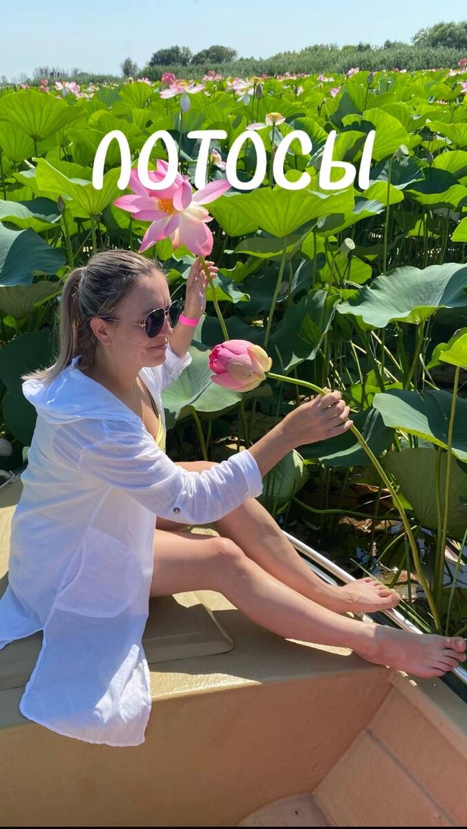 Мало кто знает, что в дельте Волги есть целые лотосовые поля и увидеть их довольно просто. Лотосы цветут в июле-августе. Оптимально покупать билеты в Астрахань с 15 июля по 15 августа, когда самый пик цветения. Местные турфирмы организовывают к лотосам экскурсии, с трансфером и обедом. Так что ничего сложного в организации путешествия нет) Читайте дальше, все расскажу, покажу. В 8 утра нас забрали из Астрахани. До рыболовной базы добирались на минивэне чуть больше часа. По приезду нас напоили чаем, угостили булочками и рассадили по лодкам. Посадка в лодки была по 7 человек, а нас было восемь. Пришлось разделить нашу группу. Точно не скажу сколько мы добирались до лотосов. Когда на скорости несешься по водной глади, совершенно нет никакого представления о времени)) Хотя я и видела лотосовые поля на фото, но не ожидала такого масштаба в реальности. Цветы огромные, нежно розового цвета, с легким ненавязчивым запахом. ***Можно сколько угодно рассматривать фотографии и залипать на видео с