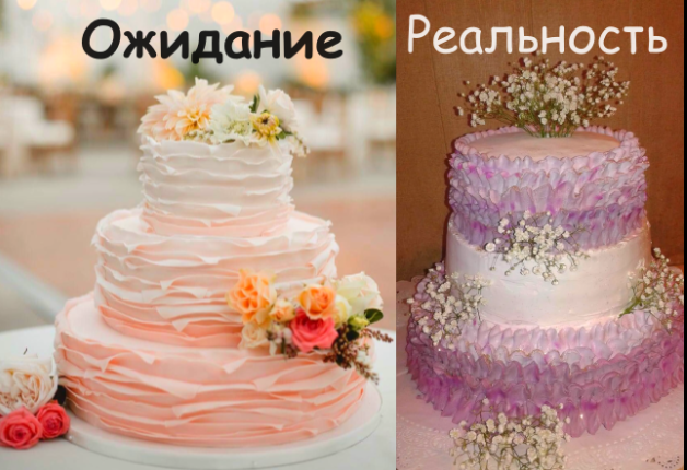 Заказчица попросила изготовить свадебный торт с таким оформлением как на первом фото, а по итогу получила торт от домашнего кондитера, которая изготовила торт по-своему, так-как она выразилась: сейчас такое оформление не актуально. Вот сообщение от самой заказчицы: Здравствуйте. Хочу показать какой торт мне приготовила кондитер на свадьбу. Я её просила сделать также в три яруса вот с таким декором (1 фото), добив немного соцветий вместо цветов, чтобы сильно не загромождать торт, а она мне выдала, это ЧУДО! Хосподи я как увидела не поверила, что это наш торт. Но самое худшее, что когда я ей сказала, что это не мой торт, ведь я просила как на картинке. Она сказала, что такое оформление сейчас не актуально🤦♀️ У меня просто нет слов! Естественно такой кошмар я отказалась принимать и потребовала вернуть предоплату. Она сначала взбрыкивала, но после того как я ей сказала, что она работает неофициально и могу написать жалобу, всё вернула. Видимо для кондитера то, что кажется сложным уже не