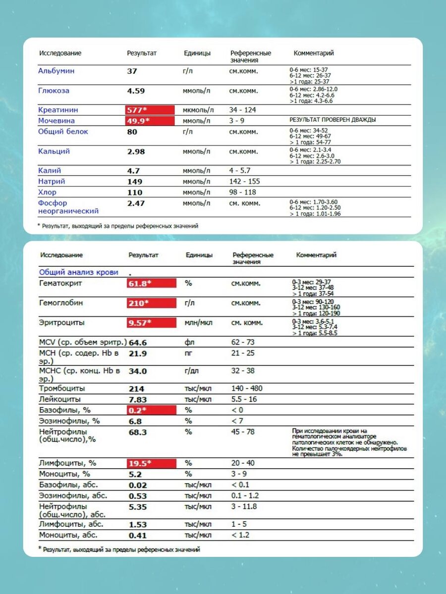 Давайте немного поиграем! Мы предлагаем вам результаты лабораторных исследований, а вы смотрите, что интересного вы в них видите и какие дополнительные тесты могли бы прояснить ситуацию. ❗️ Мы не «лечим анализы», а критически оцениваем данные, как это и должно быть в лабораторной диагностике. 🐾 Сегодня у нас — Грей. Помесь лайки, 8 лет. Живёт в частном доме, свободно гуляет по огороженной территории.⠀ Хозяин обратился в клинику с жалобами на общее ухудшение состояния, снижение аппетита и активности.⠀ 📋 В лабораторию поступили образцы крови и сыворотки для общего клинического анализа и биохимии. Что вы видите в результатах? Какие гипотезы возникают? Что бы вы проверили дополнительно? Многие из вас обратили внимание на отклонения целого ряда значений в биохимическом и общем клиническом анализах. Мы видим гемоконцентрацию, вероятно, вследствие дегидратации. ⠀ На это указывают: 🔸 Повышенное содержание эритроцитов и гемоглобина 🔸 Альбумин и общий белок — на верхней границе нормы ⠀ 🔬 Пр