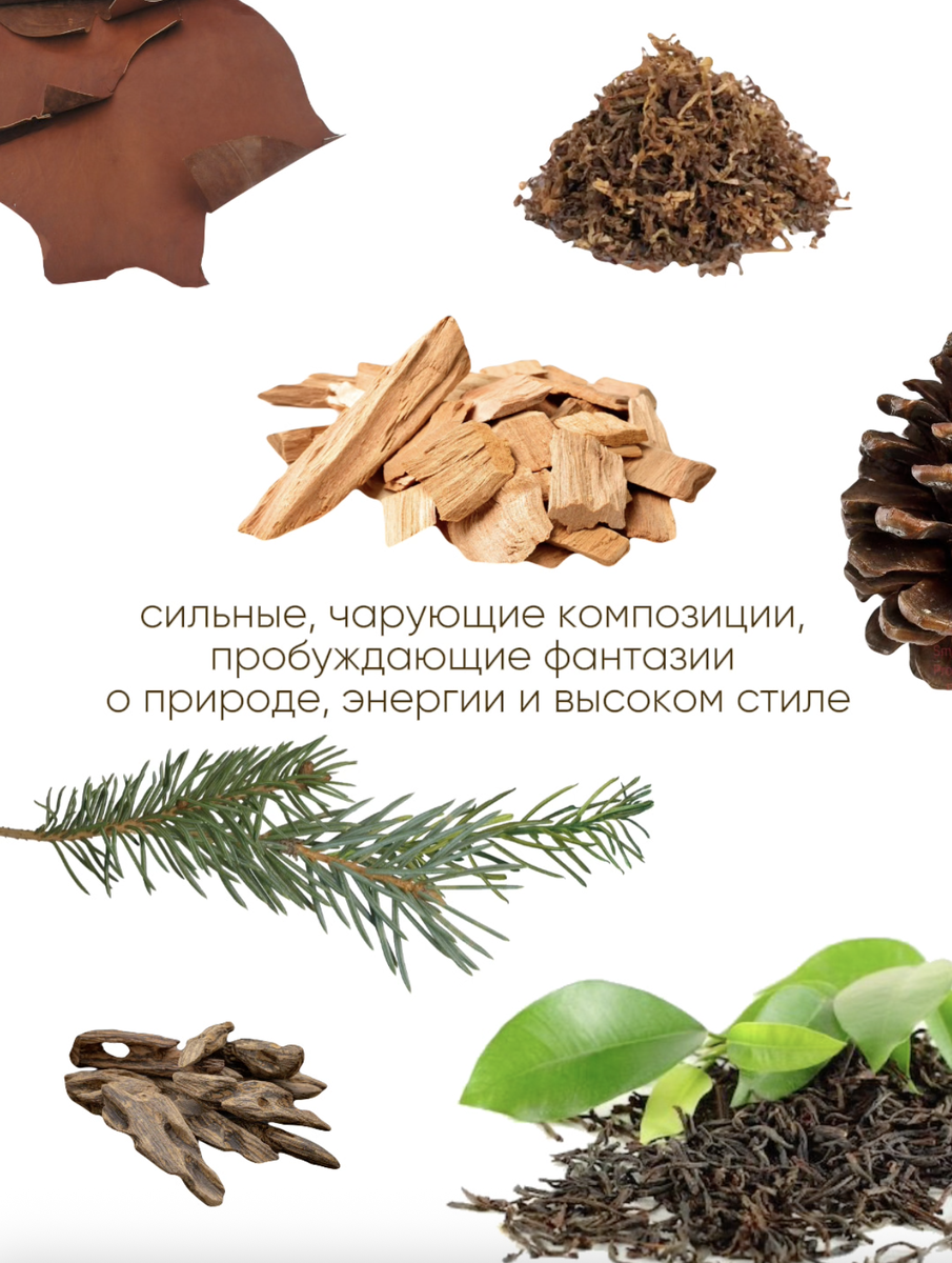 Древесные ароматы — это глубокие, сильные и чарующие композиции, которые пробуждают фантазии о природе, энергии и высоком стиле. Такие парфюмы идеально создают ауру уверенности и покоя, дают чувство уюта и невозмутимости. Семейство древесных ароматов довольно обширное по численности нот, не намного уступающее цветочным или фруктовым. Несмотря на всё разнообразие, можно выделить некоторые общие черты подобных ароматов: утончённая горечь, терпкость и суховатость, иногда с дымными, фруктовыми и/или бальзамическими тонами (в зависимости от вида дерева, чей запах передаётся в парфюмерном виде). Вообще, древесные ноты встречаются в большинстве композиций, но мы говорим что аромат относится к этой категории в том случае, если его основной аккорд древесный. Некоторые такие ноты особенно популярны и встречаются очень часто: кедр, сандал, уд, можжевельник, дубовый мох. Другие же мы видим в пирамидах гораздо реже, такие как махагони, палисандр, гваяковое дерево. Отдельно стоит упомянуть ноты вети