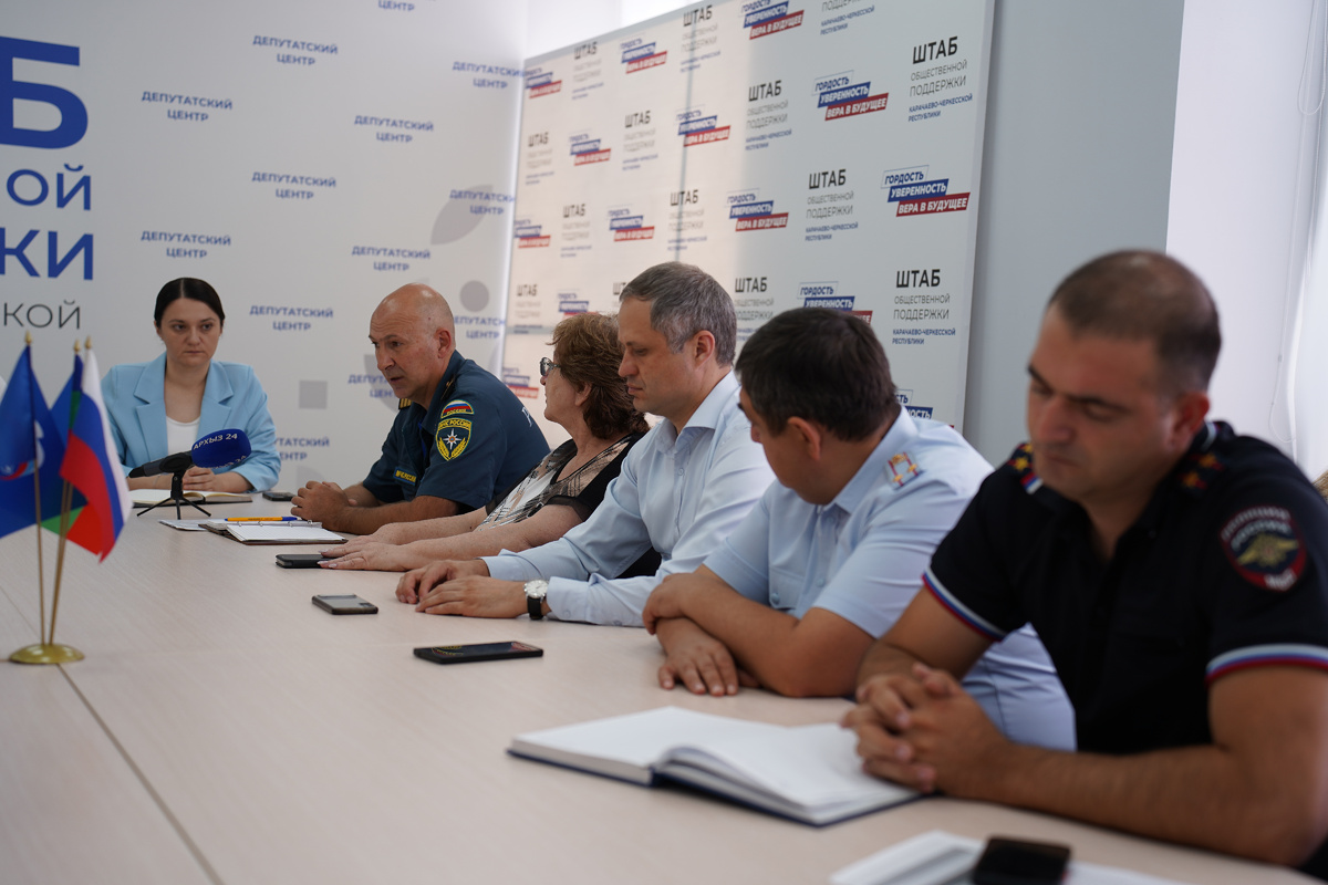 Объединить усилия для профилактики несчастных случаев на водных объектах решили участники круглого стола, организованного Центром управления регионом Карачаево-Черкесской Республики, Уполномоченным по правам ребенка в КЧР и Главного управления МЧС России по Карачаево-Черкесской Республике. Мероприятие, которое прошло в республиканской столице, было посвящено вопросам организации безопасного отдыха детей на воде в летний период и стало площадкой для диалога между представителями власти, силовых ведомств, общественников и профильных учреждений. В работе круглого стола приняли участие: • Руководитель ЦУР КЧР Ахмат Аппаков, • Уполномоченный по правам ребёнка в КЧР Мария Алакаева, • Руководитель исполкома регионального отделения партии «Единая Россия» Руслан Джамбаев, • Государственный инспектор Центра ГИМС Главного управления МЧС России по Карачаево-Черкесской Республике Аслан Кемов; • Сотрудники Министерства образования и науки КЧР, МВД по КЧР • Представители мэрии города Черкесска, • Адм