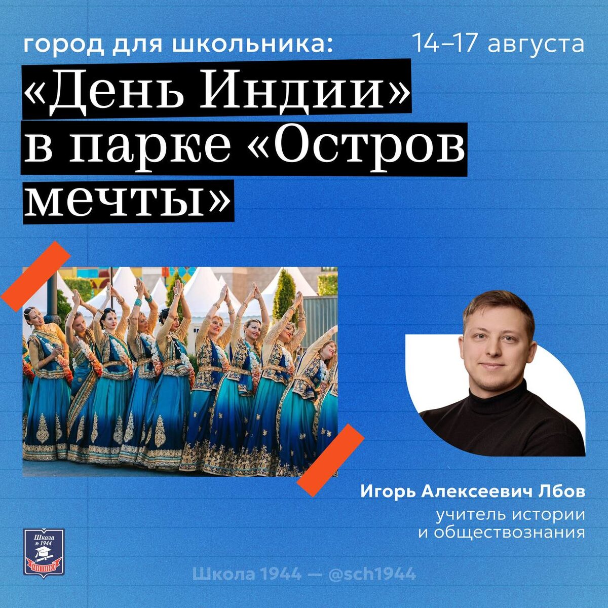 🇮🇳 Фестиваль «День Индии» в Москве! С 14 по 17 августа в парке «Остров мечты» пройдёт десятый ежегодный фестиваль «День Индии» — праздник красок, вкусов и традиций! Подробности рассказывает наш учитель истории и обществознания Игорь Алексеевич Лбов. 🙌 Что будет в программе? — уроки йоги и аюрведы от профессионалов; — холи: танцы и море ярких красок; — шахматный чемпионат для детей и взрослых; — кулинарные мастер-классы; — новые фильмы каждый день; — праздники Джанмаштами и Ратха-ятра. А ещё в эти дни пройдёт ярмарка товаров ручной работы и конкурс рисунков для школьников. Специальные гости 🙀 — советник Президента России Антон Кобяков; — директор Департамента информации и печати МИДа России Мария Захарова; — гендиректор информационного агентства «Россия сегодня»Дмитрий Киселёв. 📍 Где: парк «Остров мечты». 📅 Когда: 14–17 августа. Вход свободный! 🫰 #ДОНМ #НашиЛица