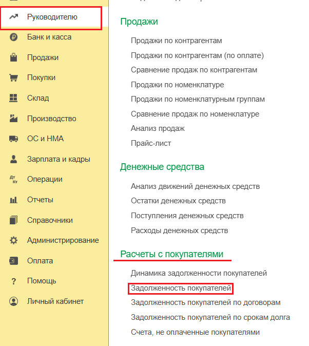 Как в программе 1С Бухгалтерия посмотреть задолженность покупателей