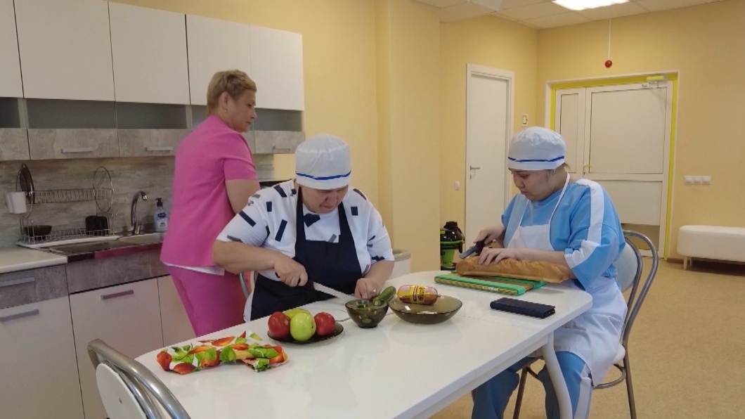 В Мегионе людям с инвалидностью помогают обрести бытовую самостоятельность. В центре социального обслуживания открылась тренировочная квартира, в которой под руководством специалистов учат покупать продукты, готовить и пользоваться бытовой техникой. Наталья и Валерия готовят завтрак: режут овощи и хлеб, накрывают на стол. Для них это первое задание в новой тренировочной квартире. Движения даются с трудом, но сейчас главное не результат, а уверенность, которую они постепенно обретают. «Мне очень понравилось. Я и дома режу, но дома не очень получается», — делится Наталья Колесникова, посетительница Комплексного центра социального обслуживания населения г. Мегиона. Квартира оборудована как обычное жилье: есть кухня, холодильник, стиральная машина, необходимая посуда. Здесь учат справляться с домашними делами тех, кто раньше зависел от помощи родных. Несмотря на возраст, осваивать бытовые навыки никогда не поздно. «У нас есть кастрюли, сковородки, чайники, то есть вся бытовая техника, кото