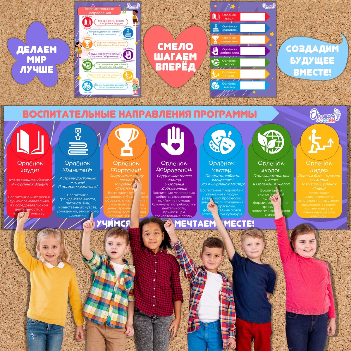 Оформление классного уголка «Орлята России» — это эффективный инструмент для создания яркого, информативного и мотивирующего пространства в классе. Оформление представлено в фирменном стиле общественного движения школьников Орлята России. В набор для оформления входит: Данный комплект предназначен для оформления информационного стенда, классного уголка или школьной доски, и помогает школьникам лучше понять воспитательные направления «Орлят России», их роль в воспитании патриотизма, гражданской ответственности и активной жизненной позиции. Он способствует развитию у обучающихся чувства принадлежности к большой дружной команде, стимулирует интерес к участию в школьных и общественных мероприятиях. Файл в формате PDF.