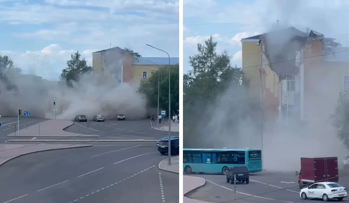 Часть здания рухнула в центре Караганды: обрушение попало на видео
