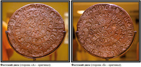 Это был небольшой по размерам диск из хорошо обожженной глины, имевший диаметр 15,8-16,5 см и толщину 1,6-2,1 см. С обеих сторон его покрывала, подобно причудливому узору, спирально идущая надпись, составленная из множества аккуратно отштампованных на керамической поверхности знаков (первое полиграфическое изделие!).