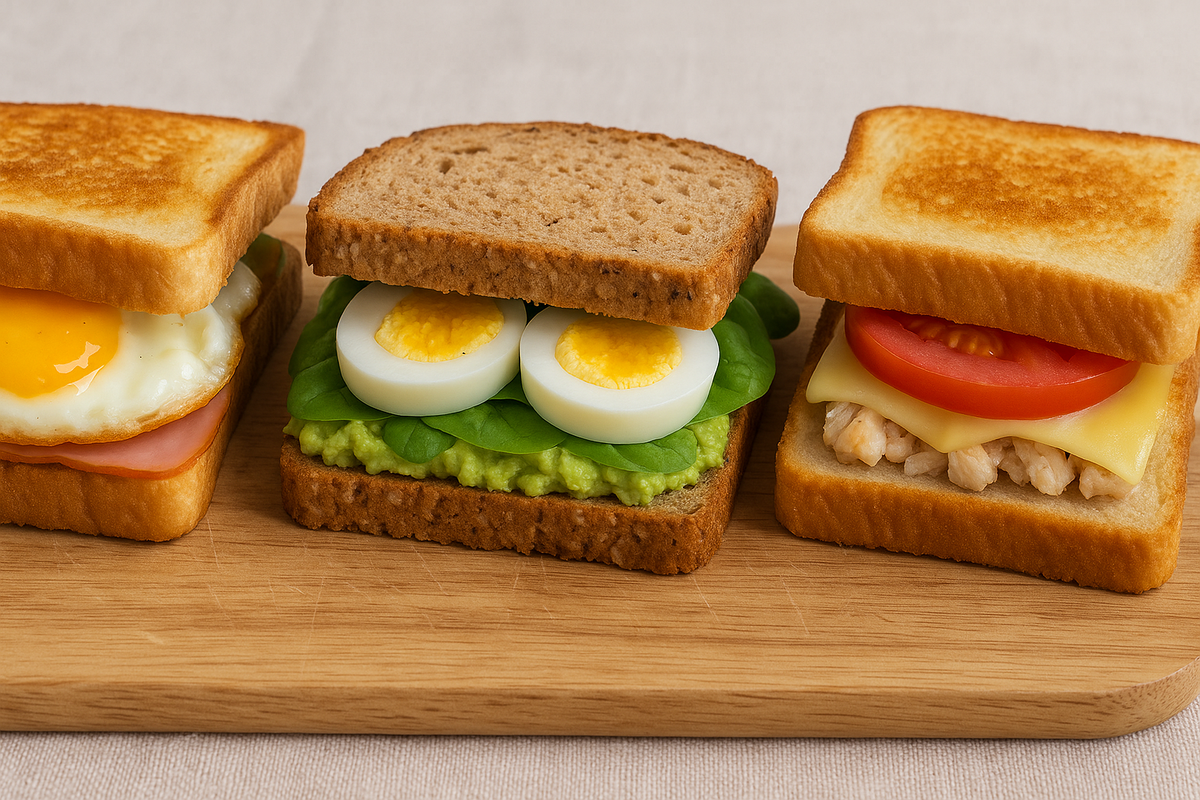 Утро бывает разным — неспешным и уютным дома или спешным, когда завтрак приходится есть на ходу. В обоих случаях сэндвич — это идеальное решение. Он быстро готовится, сытный и универсальный: можно сделать себе полноценный тёплый завтрак или аккуратно завернуть и взять с собой на работу, учёбу или в дорогу. Ингредиенты (на 1 порцию): Приготовление: Ингредиенты: Приготовление: Ингредиенты: Приготовление: