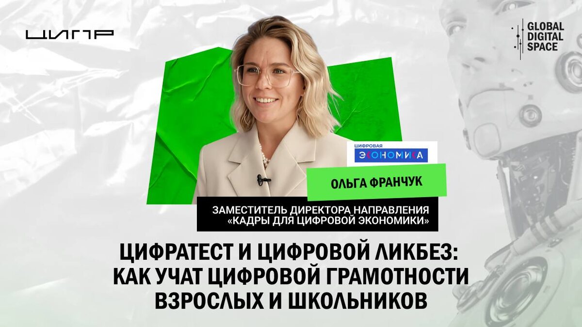 ⬜️⬜️⬜️⬜️ ЦифрАтест и цифровой ликбез: как учат цифровой грамотности взрослых и школьников На ЦИПР 2025 АНО «Цифровая экономика» представила сразу два масштабных проекта в сфере цифровой грамотности. Первый — ЦифрАтест. Это новая платформа оценки цифровых навыков для B2B и B2G-сегментов. Она ориентирована на HR-специалистов, ИБ-департаменты и руководителей образовательных направлений в компаниях. На ЦИПР была представлена пилотная версия проекта, который включал в себя тестирование из 8, 16 или 24 вопросов, разработанных при участии Минцифры и ведущих компаний-лидеров цифровой трансформации: Ростелеком, Avito, Яндекс, VK, Positive Technologies, Росатом, благотворительный фонд Сбера "Вклад в будущее". Каждая компания отвечала за свой блок вопросов: от фишинга и телефонного мошенничества до развития критического мышления. Полноценный запуск платформы состоится в ноябре 2025 года. Уже сейчас готовятся видеолекции по темам цифровой грамотности и кибергигиены, первые из них появятся на пл