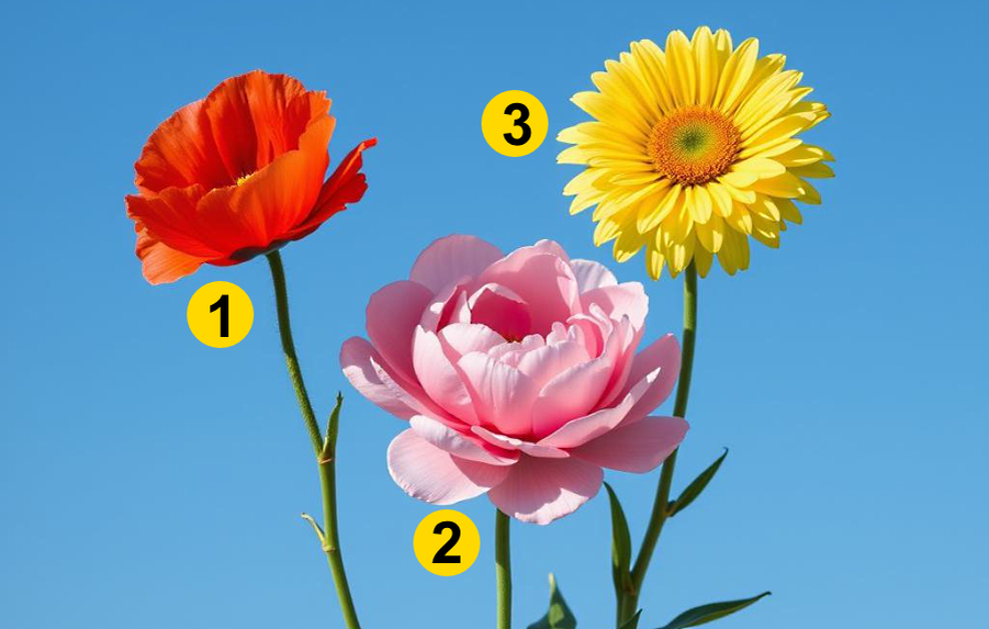 Здравствуйте, друзья! Каждый из нас – как цветок. У кого-то характер яркий, как алый лепесток, кто-то светится добротой, как солнечный бутон, а кто-то дарит нежность, будто утренний розовый рассвет. Мы часто думаем, что хорошо знаем себя, но порой одно простое решение может приоткрыть в нас черты, о которых мы даже не подозревали. Перед вами три красивых цветка. Просто выберите тот, который вам больше всего нравится. А дальше читайте, что ваш выбор говорит о вас. Готовы? Тогда поехали! 1. Цветок — Страсть, решимость и тайная сила Если ваш выбор пал на красный цветок, значит, внутри вас живёт мощная энергия. Даже если внешне вы спокойны, в нужный момент вы умеете собраться, проявить характер и идти вперёд, не останавливаясь. Вы не любите полумер — если любите, то всем сердцем, если сражаетесь — то до конца. Вы умеете вдохновлять других, вести за собой, и иногда даже не замечаете, как сильно вы влияете на окружающих. Но вот что неожиданно: за этой силой и решительностью часто прячется уя