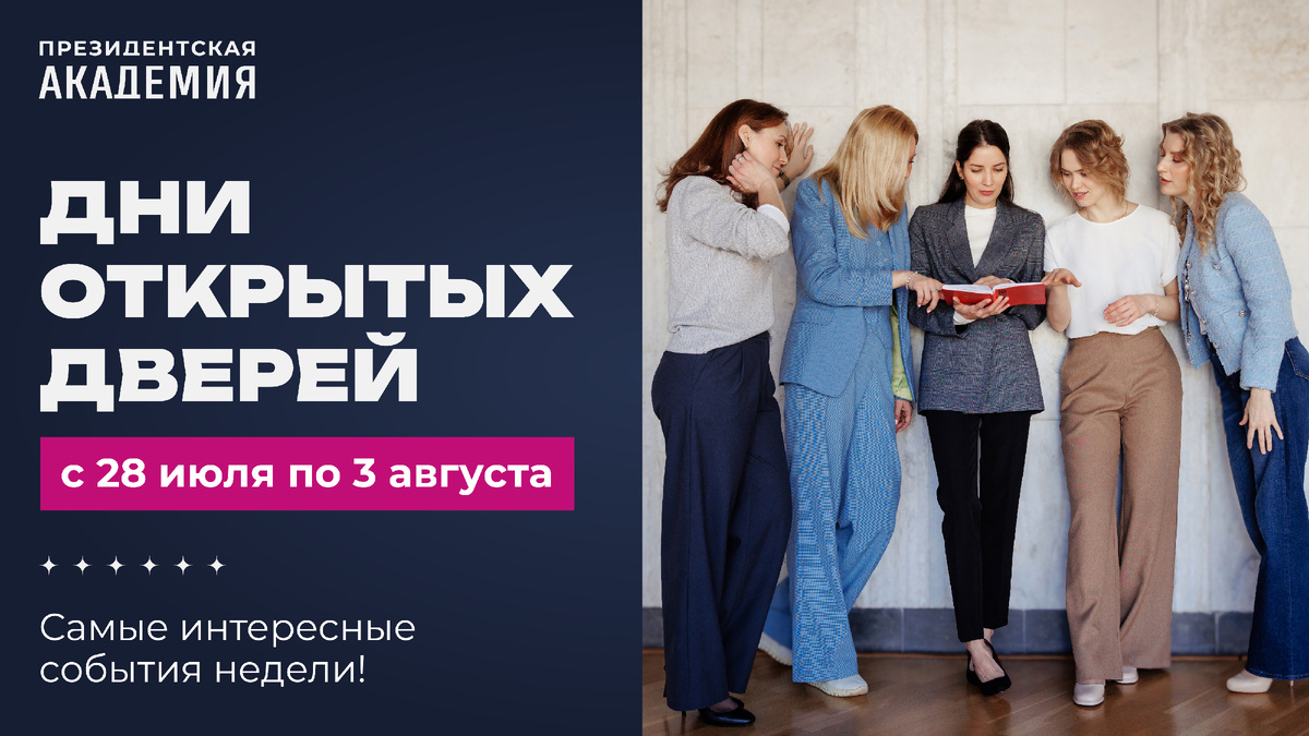 Новая неделя — новые мероприятия. Дни открытых дверей программ бакалавриата, специалитета и магистратуры в Президентской академии. 29 июля, вторник ✔ Программа бакалавриата «Стратегическое управление компанией» Института управления Президентской академии Формат — онлайн. Регистрация по ссылке https://www.ranepa.ru/dni-otkrytykh-dverey/programma-bakalavriata-strategicheskoe-upravlenie-kompaniey/ ✔ Программа магистратуры «Политическое региональное управление и экономическая политология» ИОН Президентской академии Формат — онлайн. Регистрация по ссылке https://www.ranepa.ru/dni-otkrytykh-dverey/programma-magistratury-politicheskoe-regionalnoe-upravlenie-i-ekonomicheskaya-politologiya-/ ✔ Программы магистратуры «РЕСУРС России» Президентской академии Формат — онлайн. Регистрация по ссылке https://www.ranepa.ru/dni-otkrytykh-dverey/programmy-magistratury-resurs-rossii/ ✔ Программы Executive МВА «Управление бизнесом для руководителей» и DBA «Доктор делового администрирования» Института управл