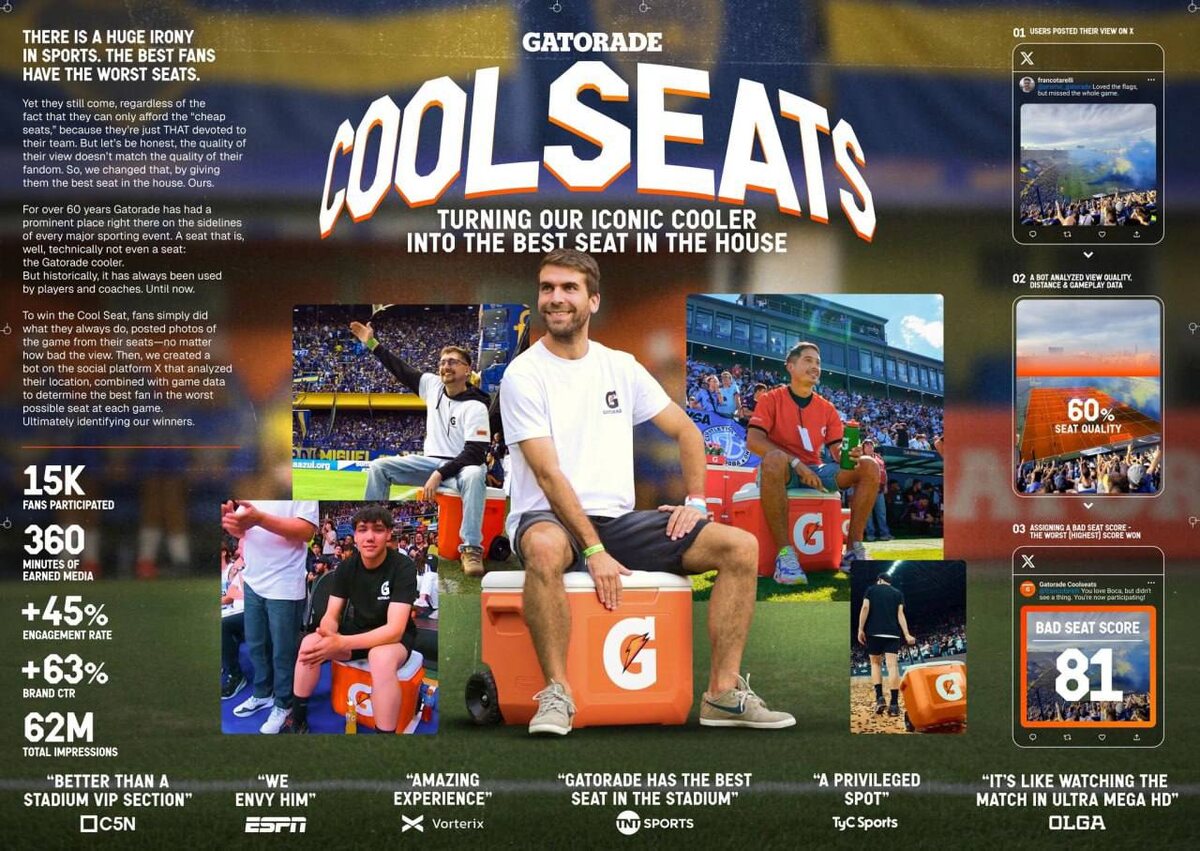 Как худшие места стали лучшими. Бренд напитков Gatorade превратил свои холодильники в VIP-сидения. Находили (с помощью AI) фанатов с худшими местами на трибунах и пересаживали их на холодильники прямо у поля. Получились Cool Seats – «крутые» и «прохладные» места. Отличная игра слов и точное попадание в бренд. Результат: 15 тыс. заявок, 62 млн охватов, 45% вовлеченность. И пример крутой активации: как старый актив можно распаковать по-новому. Андрей Симанович Еще больше о спортивном бизнесе и монетизации спорта в канале В этом посте есть большое видео, которое не загрузилось в Дзен. Откройте оригинал поста в телеграме, чтобы его посмотреть