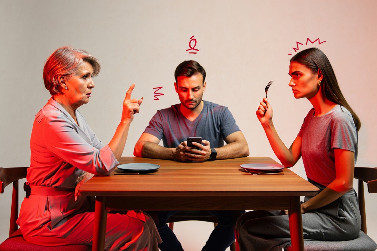 Удивительно, как удобно быть "нейтральным"! Свекровь методично уничтожает невестку психологически: критикует внешность, воспитание детей, ведение хозяйства. А сынок? Ах да, конечно же! Он "не замечает" этих нападок. "Как мило"! "Мама просто такая, не обращай внимания", - философски замечает он жене. Прекрасно просто! Получается, жена должна терпеть унижения, чтобы мужу было комфортно. И что же делает наш "дипломат", когда жена начинает давать отпор? Естественно, обвиняет ее в "конфликтности"! "Ты портишь семейную атмосферу!" - возмущается защитник мира. Удивительно, правда? 20 лет мама портила атмосферу - молчание. Жена ответила один раз - скандал. Ах да, забыла упомянуть: когда жена наконец взбунтовалась и поставила свекровь на место, муж был в ШОКЕ. "Как ты могла так говорить с моей мамой?!" Как же обожаю этих "нейтральных" мужей. Особенно когда они удивляются, что жены от них уходят. "За что?!" - искренне не понимают.