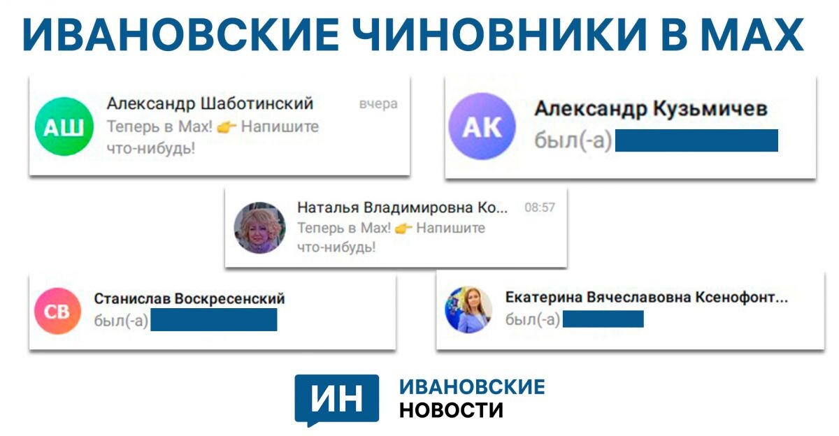 Политики и государственные служащие в Ивановской области массово переходят в мессенджер MAX. Соответствующее наблюдение удалось сделать сотрудникам редакции СИ «Ивановские новости». Так, мы нашли в мессенджере губернатора Ивановской области Станислава Воскресенского, главу города Иваново Александра Шаботинского, спикера гордумы Александра Кузьмичева, главу Шуи Нататью Корягину, директора департамента образования и науки Екатерину Ксенофонтову. MAX – российский мессенджер, выпущенный в 2025 году. 24 июня президент России Владимир Путин подписал закон «О создании многофункционального сервиса обмена информацией и о внесении изменений в отдельные законодательные акты Российской Федерации», который больше известен как закон «О создании национального мессенджера». Полагается, что новая цифровая платформа MAX объединит функции мессенджера и государственных сервисов, а также органы власти получат возможность использовать платформу для общения с гражданами.