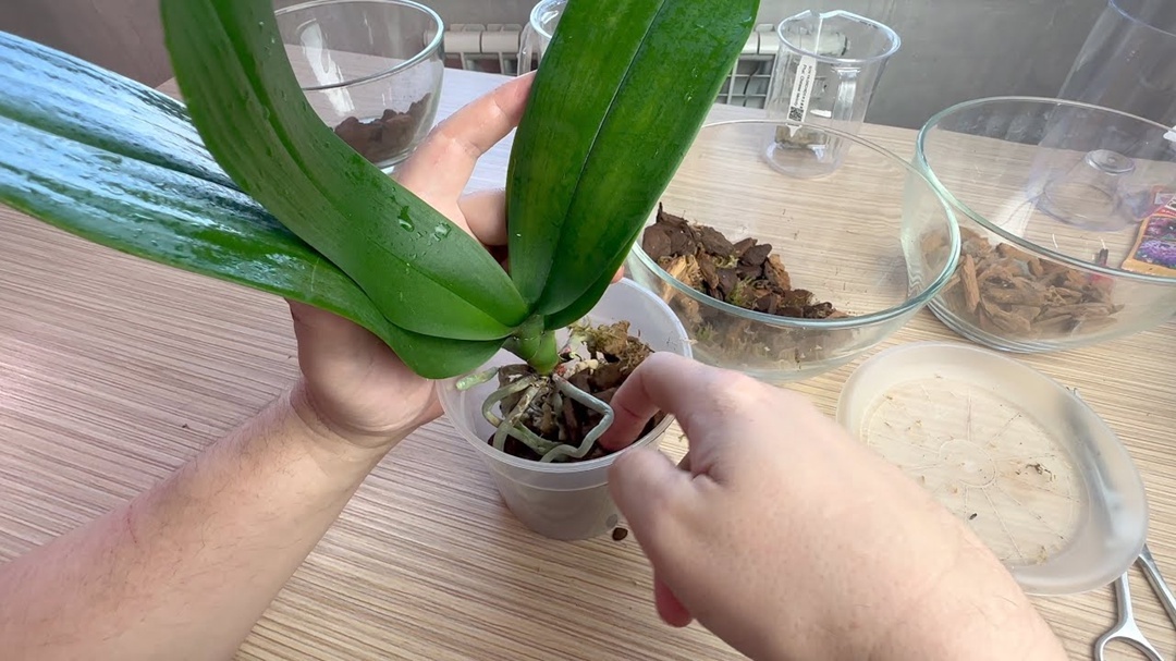 Друзья, всем привет! Сегодня мы расскажем историю нашей прекрасной орхидеи-бабочки, которую спасли от черного грибка. После чистки и обработки средством "Максим", нужно пересадить нашу красавицу. В этой статье я расскажу, как правильно пересадить орхидею после стресса, поделюсь секретами подготовки и дам советы по уходу после пересадки. Поехали! Перед пересадкой я всегда взбадриваю орхидею, особенно после стресса, такого как перепад температур или грибок. Для этого использую проверенное средство — сукцинат аммония, или аммонийную соль янтарной кислоты. Этот стимулятор ускоряет обмен веществ, возвращает растение к жизни и даже стимулирует цветение у здоровых орхидей. Как приготовить раствор: Важно: Не переборщите с нашатырем, чтобы не превратить смесь в азотное удобрение. После этого я кладу орхидею в раствор "кверху попой" и даю ей немного "напитаться". Для пересадки я подготовил трехкомпонентный грунт: Кора орхиата — средней фракции, обработанная и безопасная. Дубовая кора — для защит