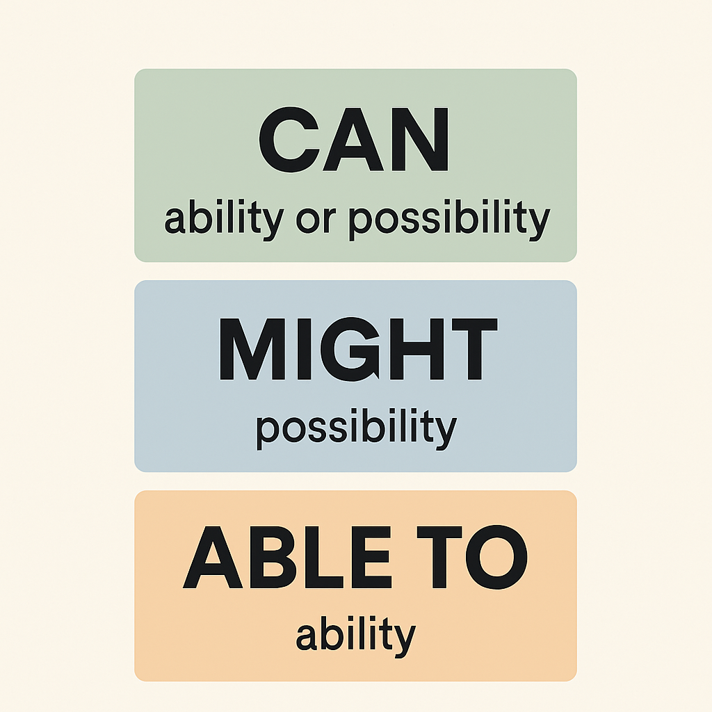 Если вы когда-либо пытались сказать по-английски фразу вроде «он может прийти», то наверняка сталкивались с выбором: can, might или able to? 🤔